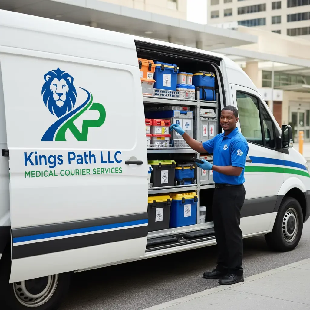 On time. Secure. Reliable. At Kings Path LLC, we specialize in medical courier services that put patient care first. From labs and pharmacies to clinics and hospitals, we ensure critical supplies and specimens are delivered with accuracy, speed, and care you can trust.